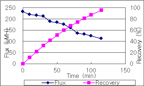 세리아(Ceria) PROJECT ISSUE BEBEFIT RESULT CMP Slurry(Ceria) Concentration & Diafiltration 세리아 분산액의 정제 및 고농축 순도향상(DF): 8.5 ㎳/㎝ → 40 ㎲/㎝↓ / 농도향상: 30~38% → 50%↑ Membrane : 0.05㎛, PTFE / Flux : 180LMH PHOTO Basic Material, Nano Material21 bktJanuary 20, 2020공정단순화, 품질향상 Facebook0 Twitter LinkedIn0 Reddit Tumblr Pinterest0 0 Likes