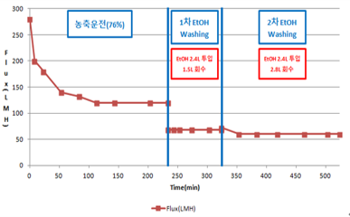 셀룰로스 나노섬유(CNF) PROJECT ISSUE BEBEFIT RESULT Cellulose Nano Fiber(CNF) Concentration & DiaFiltration CNF 농축 및 정제(Washing) 농축율(회수율)향상 : TS 0.5% → 3% [VCF 4.1 (76%)] 원가절감: (EtOH)사용량 절감 Membrane : 0.05㎛, PTFE / Flux : 60~130LMH PHOTO Basic Material, Nano Material21 bktNovember 13, 2020품질향상, 공정단순화 Facebook0 Twitter LinkedIn0 Reddit Tumblr Pinterest0 0 Likes