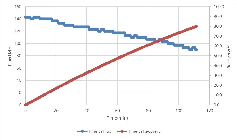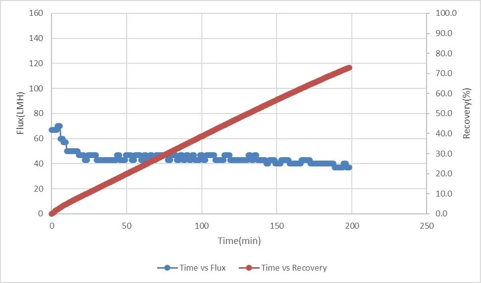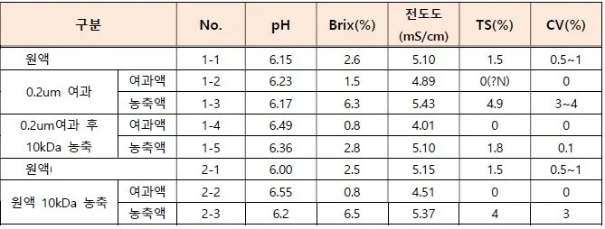 효소농축 Membrane : 10kDa, PES, 45LMH, 73% 농축