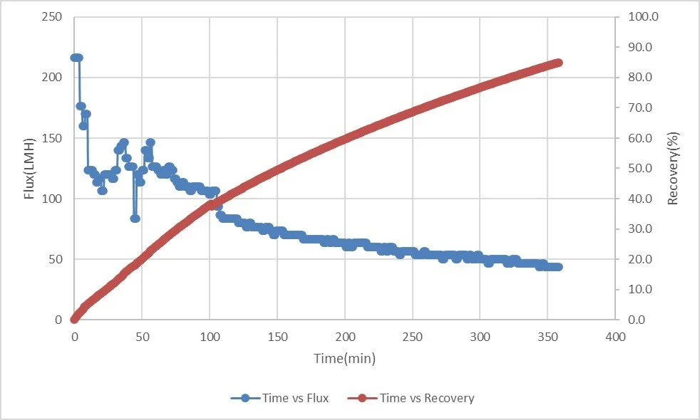 농축율 확인, 단백질 및 당류 제거 성능 확인