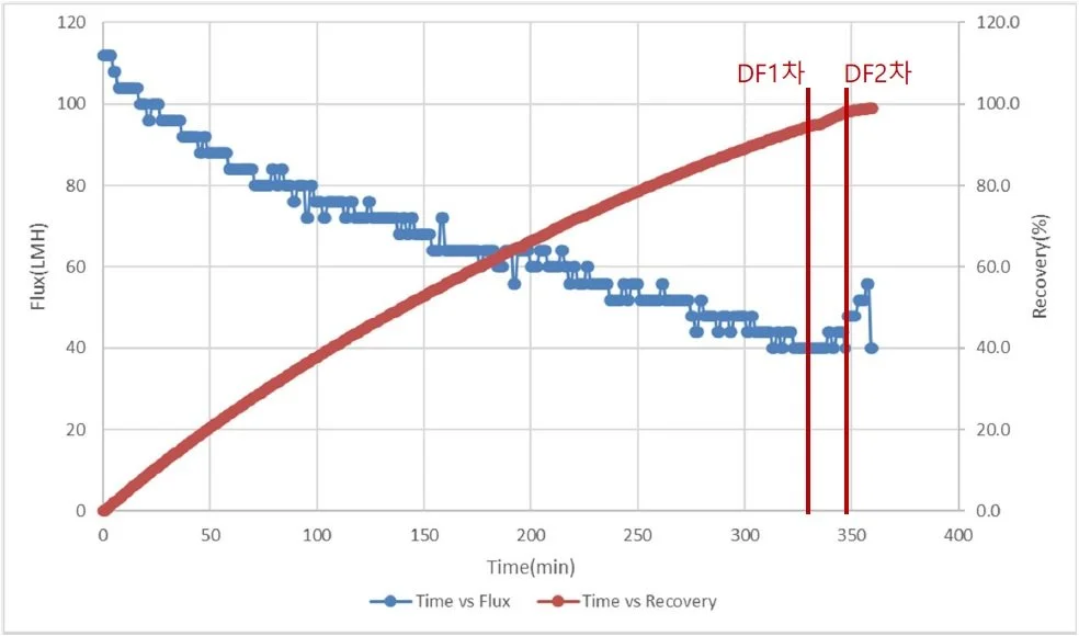 모유올리고당(HMO's Sialyllactose) PROJECT Sample Purpose RESULT 시알릴락토스(Sialyllactose) 시알릴락토스 원심 상등액 잔여물 제거성능 확인, Flux 확인 Membrane : 10kDa, PES, 52LMH, 95%농축 PHOTO White-bio, Green-bio, bio221 bktDecember 20, 2022공정개선, 품질향상 Facebook0 Twitter LinkedIn0 Reddit Tumblr Pinterest0 0 Likes