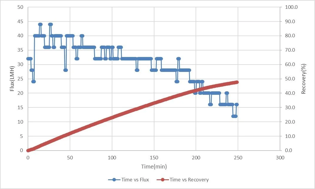활성대사물질(Vitamin K2) PROJECT Sample Purpose RESULT 비타민K2(Vitamin K2) 배양액(K) 배양액 농축 운전 시 Flux 변화량 확인 Membrane : 0.05um, PTFE, 30LMH, 50%농축 PHOTO bio2, Green-bio, White-bio21 bktJanuary 13, 2023공정개선, 품질향상, 공정단순화 Facebook0 Twitter LinkedIn0 Reddit Tumblr Pinterest0 0 Likes