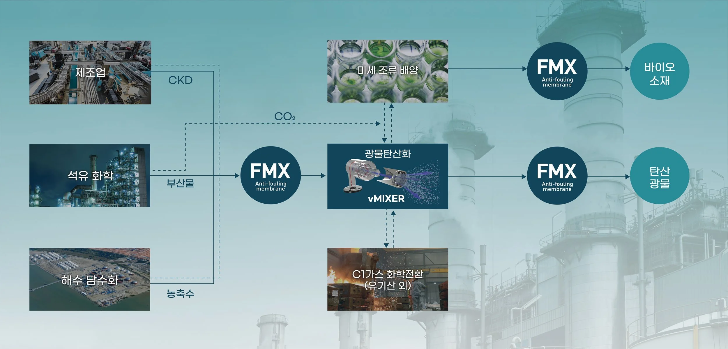 - 공 정: Na2CO3 여과(FMX) → CO2 용해/고정 (vMixer) → NaHCO3 농축(FMX)